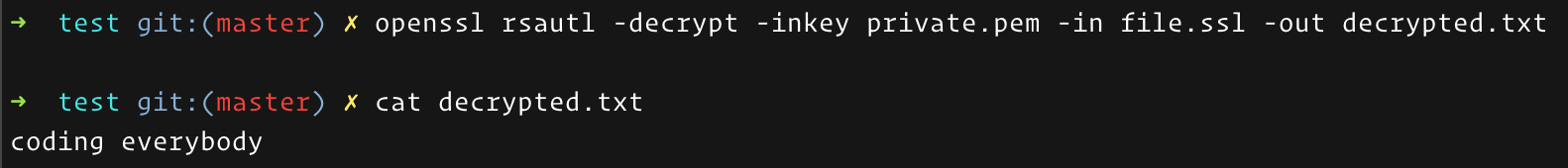 5. file.ssl을 수신받은 비공개키 사용자는 비공개키 pviate.pem을 사용하여 복호화