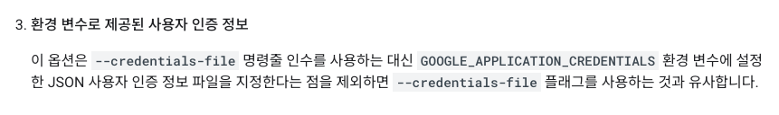 환경변수를 만드는 이유는 sql proxy를 실행하기 위해(./cloud_sql_proxy) GOOGLE_APPLICATION_CREDENTIALS라는 환경변수에 사용자 인증 정보 파일(서비스 계정 키 JSON)의 "경로"값이 있어야 함.