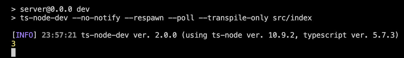 이후 packages/server/src/index.ts의 에러가 사라지게 되고 정상 실행됩니다.
