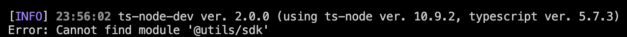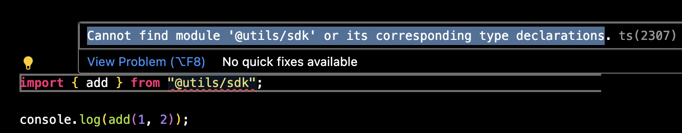 이제 packages/server/src/index.ts에서 add함수를 사용해 보겠습니다. 물론 실행되면 모듈을 찾을 수 없어 에러가 발생합니다.