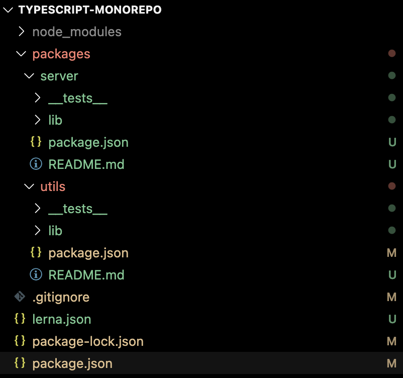 lerna create 명령어를 실행하니, packages/에 server와 utils 폴더가 생겼습니다. 이 폴더를 사용하여 우리가 만들려고하는 서버, 또는 프론트 코드, 유틸함수/공통 타입 모음집 등...으로 사용할 수 있습니다.